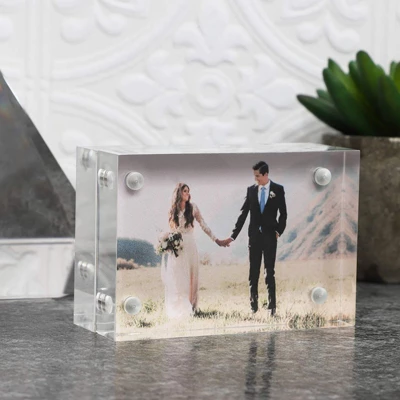 - Acrylic Picture Frame: These acrylic block picture frames are strong enough to hold pictures flat and securely; whether displayed horizontally or vertically, photos will not slide out of place