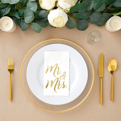 - Elegant Set of 50: This charming pack includes 50 gold foil Mr & Mrs napkins in a timeless white hue that will effortlessly match a variety of wedding color palettes for a cohesive look