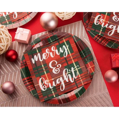 - Comes With: You will receive 100 Xmas napkins with a plaid design that reads “Merry and Bright”