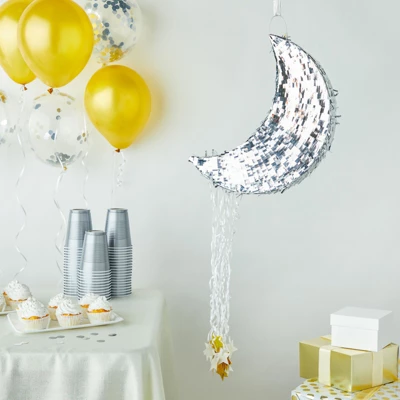 - Pull String Pinata: Add this crescent moon pinata to your galaxy party, space-theme baby shower, Eid al-Fitr, and Eid al-Adha party decorations to impress your guests with a perfectly coordinated theme