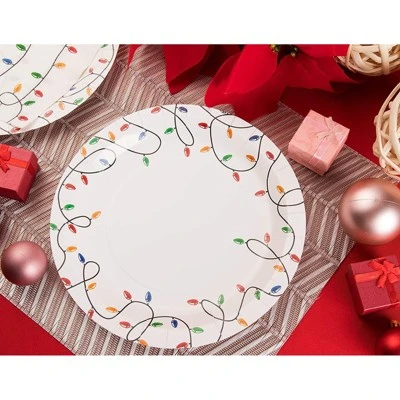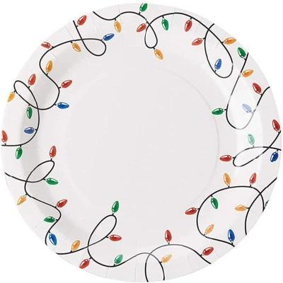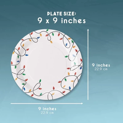 - SERVES 80: Pack includes 80 paper plates featuring red, blue, yellow, and green Christmas lights as border; perfect for hosting Christmas luncheons and dinners.