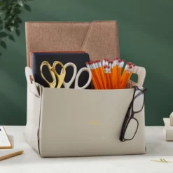Gray Jute Fabric Storage Bin Basket Container Cubes Organizer With Handles Rectangular 16″x6″x5.25″