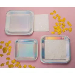Juvale 48-Pack Iridescent Foil 10 Inch Square Disposable Paper Plates Party Supplies