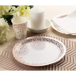 Juvale 48-Pack Metallic Rose Gold Foil Polka Dot Disposable Paper Plates Party Supplies, 9 Inch