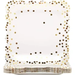 Juvale 48-Pack Square Disposable Paper Plates For Parties And Dinners, Gold, 9 Inches