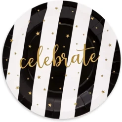 Juvale Black And Gold Celebrate Disposable Paper Party Plates (80 Count) 9 Inches