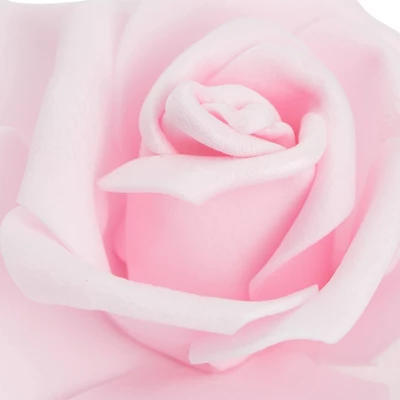 Elevate your home and party decor with this 100-pack of beautiful stemless light pink fake flowers. Use the flower heads for crafts, to create Easter decorations, photo booth props, backdrops, or floral garlands for baby showers, weddings, and birthday parties. The light pink fake roses are made from polyethylene foam (PE Foam) that will not wilt and requires little maintenance; to clean, wipe them with a clean damp cloth, store them and use them for multiple events. Each one of the artificial pink roses is about 2.8 inches in diameter and 1.1 inches tall, perfect for scattering around dessert tables and countertops.