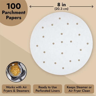 - Bulk Set: Each order comes with 100 pre-cut perforated, translucent white air fryer parchment paper liners for bamboo steamer pots, air fryer baskets, and traditional ovens