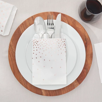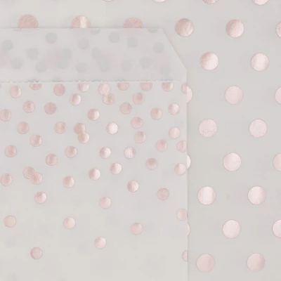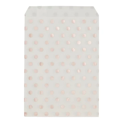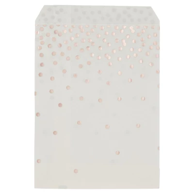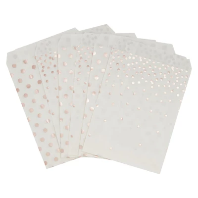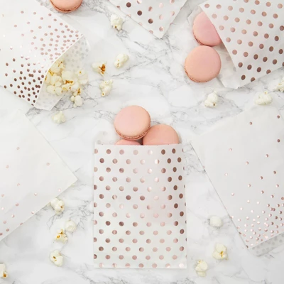 - White and Rose Gold Candy Bags for Party: These cookie treat gift bags come in 2 different rose gold polka dot designs that are perfect for any occasion
