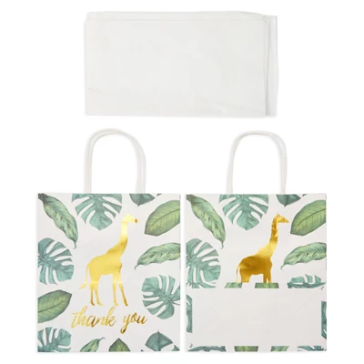 - Safari Party Supplies: Use this set of jungle theme gift bags as a convenient wrapping solution for small gifts and treats; each thank you bag features tropical leaf designs with gold safari animals