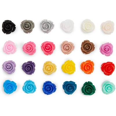 This 240-piece set of flatback rose charms for jewelry making comes with 24 different colors to choose from, you’ll have more than enough resin rose beads to embellish an art frame, decorate a headband, or adorn a fun craft project. Great for DIY and craft classes, this no-hole pack comes with a nifty clear storage box for easy organization. Each embellishment measures approx. 15mm (0.59 inches) in diameter and 7mm (0.28 inches) in thickness; storage box measures 7.5 x 5.2 x 0.9 inches. Please note that these colorful beads are slightly larger than standard beads.