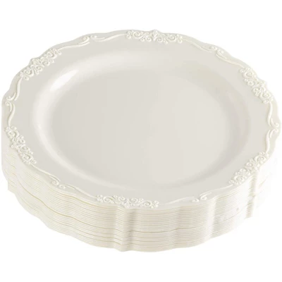 - WEDDING DECOR: The ivory white plastic plates feature an elegant detailed border, ideal for creating a celebratory atmosphere and perfectly coordinated theme for your upcoming wedding or dinner party