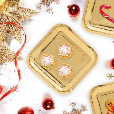 - Elegant Square Design: Made of 350gsm whiteboard paper, the gold birthday plates are covered in metallic gold foil that has a slight reflection on them, adding a touch of sophistication and class