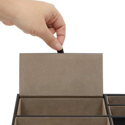 - 5 Compartments: Our leather valet tray measures 10 x 7.3 x 2 inches with 5 compartments for easy accessibility; one of the sections has a flip-top lid for additional privacy
