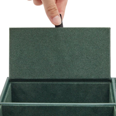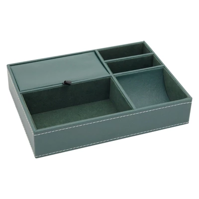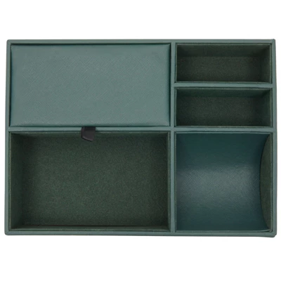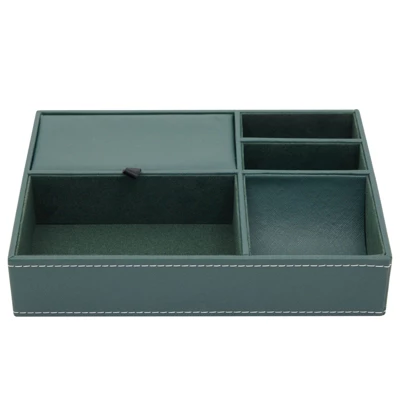 - Dresser Top Organizer: The dark green leather tray for men and women can also be used as nightstand drawer organizer for ring, coins, watch, jewelry, glasses, and small devices; stylishly covered with a sleek inner layer, this womens and mens valet tray organizer will protect your valuables from scratches