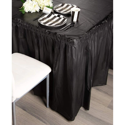 - BLACK TABLE SKIRTS: Includes a pack of 6 black table skirts with adhesive strips for easy setup.