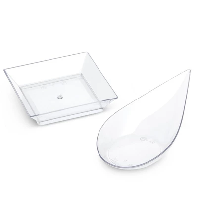 - High Quality: Our mini dessert plates and one bite appetizer spoons are made from durable clear plastic that’s sure to last throughout your entire event no matter what you’re serving