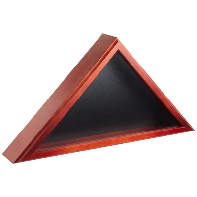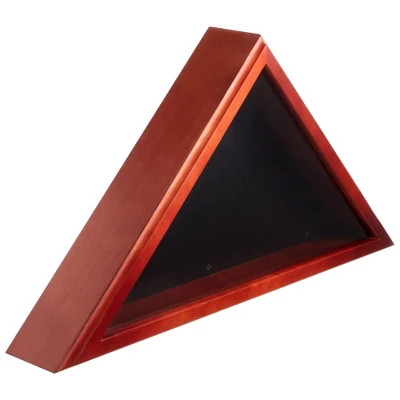 Proudly display this display case in your home or office to show friends and family your patriotic pride. Crafted with a rich cherry wood finish, this glass triangle flag frame is a beautiful way to display an American flag during special ceremonies and events. Use the wooden flag holder case for burial flag, reservists, or service members who have passed as you place the folded flag display case on their coffin during their burial or memorial service. The shadow box for american flag folded designs measures 24.7 x 12.4 x 3.5 inches, perfectly sized for any 5×9-inch standard-size American flag. Please note, that the flag is not included.