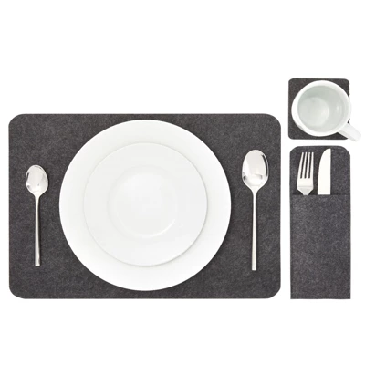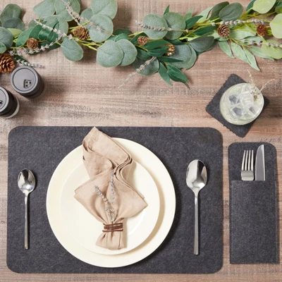- Felt Placemats Set: Use our dark gray placemats, coasters and silverware pouches to give your meals a sophisticated and stylish look while keeping your countertop clean from spills