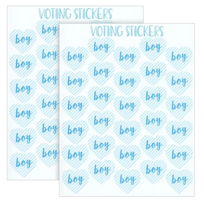 - Up to 120 Votes: This cast a vote gender reveal party set comes with 120 stickers altogether, 60 pink heart stickers for ‘girl’ and 60 blue heart stickers for ‘boy’