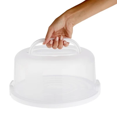 - Round Cake Carrier: Our cake carrier with handle features a semi-transparent design and easy to use lid