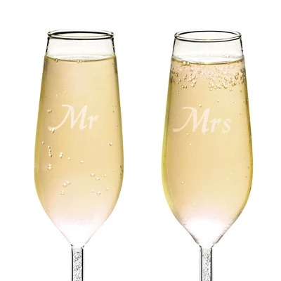 Juvale Set Of 2 ‘Mr And Mrs’ Champagne Toasting Flutes For Bride And Groom, Wedding Wine Glasses For Newlyweds, Engagement Gifts