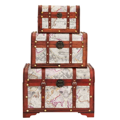 - 3 Assorted Sizes: The largest vintage trunk measures 19.7×12.7×13.5 inches; the medium wood chest measures 15.5×10.2×9.9 inches; the small trunk measures 11.7x8x7.7 inches