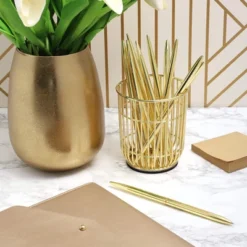 Juvale 12 Pack Retractable Gold Ballpoint Pens Bulk Set For Office Supplies, Black Ink (6.4 In)