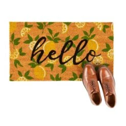 Juvale Nonslip Coco Coir Front Welcome Door Mat, Hello Lemon Indoor Outdoor Doormat Rug, 17×30 In